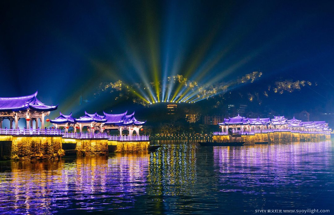 广济桥最美的时候是在晚上,这也是国内最独特的一场灯光秀。依托中国四大古桥之一的广济桥、廿四楼台廿四样,结合音乐、投影、山体的大型户外灯光秀。完美展现了一个城市的文化内涵,塑造了城市的美好形象,同时赋予了城市新的活力,也同步迅速拉动城市夜间经济的发展。演绎了舞台灯光与景观亮化的跨界融合。