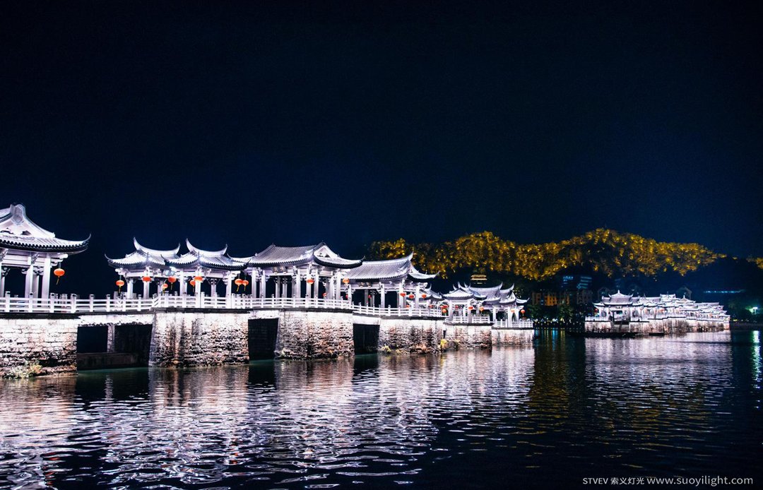 为了凸显古亭的特有建筑风格,实现色彩丰富的灯光效果,整座桥体安装了1万多套RGBW系列,单点单控的LED瓦楞灯、LED投光灯、LED洗墙灯,为光影秀的创作提供了更多的可塑性。
